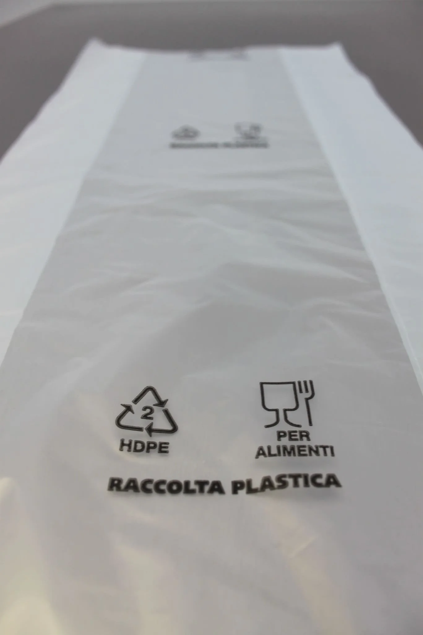 I sacchi in polietilene, di vari formati e spessori, possono essere estrusi in monostrato o coestruso a 3 strati; il materiale può subire lavorazioni di foratura, microforatura ed essere personalizzato con stampe fino a due colori.